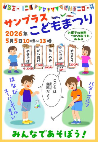 5月5日(こどもの日) 10時から13時までサンプラスこども祭りを開催いたします。